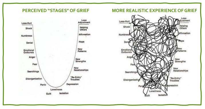 For me, the difference between grief and grieving is, that grieving is what happens as we get used to the fact that our loved one is gone, that we're carrying the absence of them with us. Grief is the natural response to loss and an albatross that will hang around our neck forever. For example, I lost my big brother at only 21 years old so I experienced that grief on my wedding day because it's a new moment where I’m having a response to loss. Whereas "grieving" means that our relationship to that grief changes over time. So the first time, maybe even the first 50 times, you're knocked off balance with grief, it feels terrible and awful and unfamiliar. But maybe the 51st time, you think to yourself, "I hate how this feels, I don't want to feel this way. But I do acknowledge it, and I do know that I will get through this painful wave."